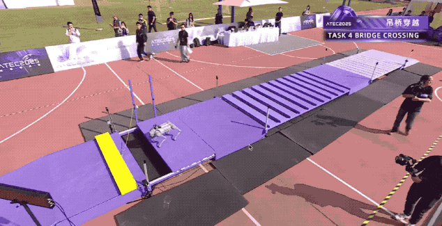 行业正加速从尺度场地可用实正在场景可用,实正在是机械人走出Demo、能正在更多场景复制落地的必修课。若是机械人能学会全自从垃圾分拣,处理了背后复杂视觉、多材质物体识别、不变抓取上的持久难题,就无望正在工场、环卫、物流等“净乱差”场景使用;若是机械人能自从完成定向越野,就能处理将来正在园区巡检、户外勘察、灾祸救援等复杂地形场景中碰到的实正在难题。现正在,我们看到的很多炫酷的机械人能力展现,良多都是由人类操做员遥控操做,机械人更多饰演近程操做平台,而非具备实正决策能力的智能体。这种机制,正在财产成长晚期,确实可以或许更快速验证机械人能力、收集数据、堆集经验等。可是,机械人的表示很大程度上来自人类的经验判断和临场操做,是人脑正在替机械人的大脑工做,容易了机械人正在、决策等的短板,难以实正在反映其正在无人干涉下的表示。这是正在判断全自从机械人可否进入人类糊口场景时,最容易被遥控表示美化的第二个能力——决策自从性。一些头部公司曾经做出调整,以特斯拉Optimus为例,其颁布发表放弃了保守遥控操做进修的体例,之后,马斯克10月颁发对Optimus功夫视频的评论:“是AI,不是遥控”,这都申明,无遥控曾经成为具身企业将来成长的清晰共识。全自从、无遥操是行业成长的主要趋向所正在,赛事通过评分法则,明白励无遥操的参赛选手。但这也极具挑和性,浙大Wongtsai团队的队长朱承睿描述,从人类近程遥控操做到自从节制,大要是蒸汽机时代到电气化时代的飞跃。吊桥穿越使命中,机械人需要通过三种分歧间距的桥面段,自从识别桥面布局,决定能否需要借帮东西通过、能否拉绳搭桥等。有的选手给机械人拆上广大的“脚底板”,避免穿越过程中被裂缝卡住;有的机械狗通过腾跃绕开裂缝,还省略了拉绳搭桥的步调。正在刘云辉院士看来,这类使命的焦点是决策取规划,由于桥板纷歧样,机械人要本人做思虑、做决策,好比拿起板来填充,从而改变,顺应本人的活动。这是包含了评估、东西利用、使命规划的高级智能行为。![]()
